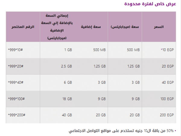 أسعار المكالمات والإنترنت وتفاصيل الأنظمة الشهرية والباقات في شبكة المحمول الرابعة المصرية للإتصالات We