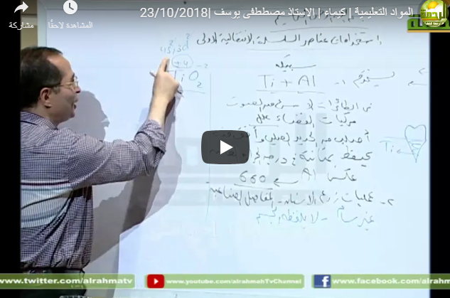 شرح مادة الكيمياء الصف الثالث الثانوى للاستاذ مصطفى يوسف البرامج التعليمية قناة الرحمة