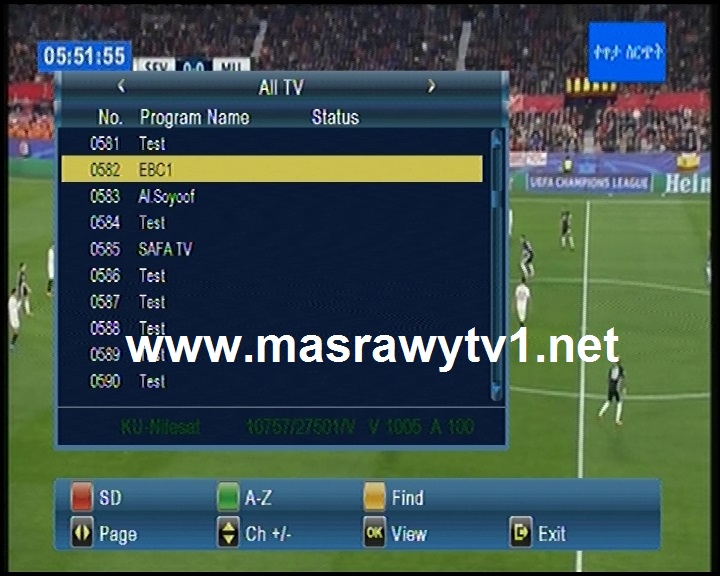 التردد الجديد لقناة Ebc الاثيوبية على النايل سات التي تنقل دوري ابطال اوروبا Youtube