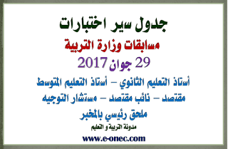 جدول سير اختبارات مسابقات وزارة التربية دورة 29 جوان 2017 البكالوريا مدونة التربية والتعليم Onec 2020