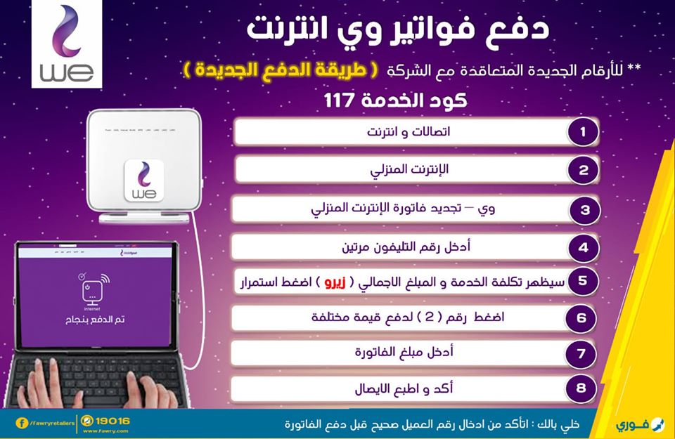 دفع فواتير الانترنت الارضي We اتغير عن ما كان عليه سابقا