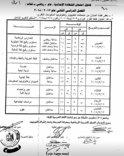 الرسمي صورة جدول امتحانات الشهادة الابتدائية والإعدادية والثانوية نصف السنة الدراسية 2017 2018 النقل أولى وتانية وثالثة الفيوم السلام