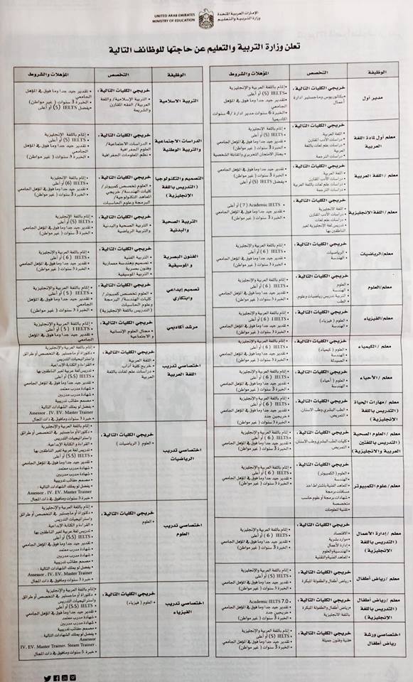 Jobty إعلان وظائف وزارة التربية والتعليم بالإمارات لطلب Facebook