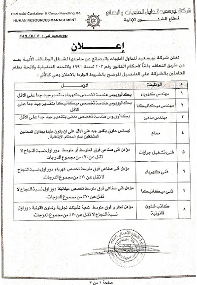 وظائف فى شركة بورسعيد لتداول الحاويات والبضائع وظائف خاليه